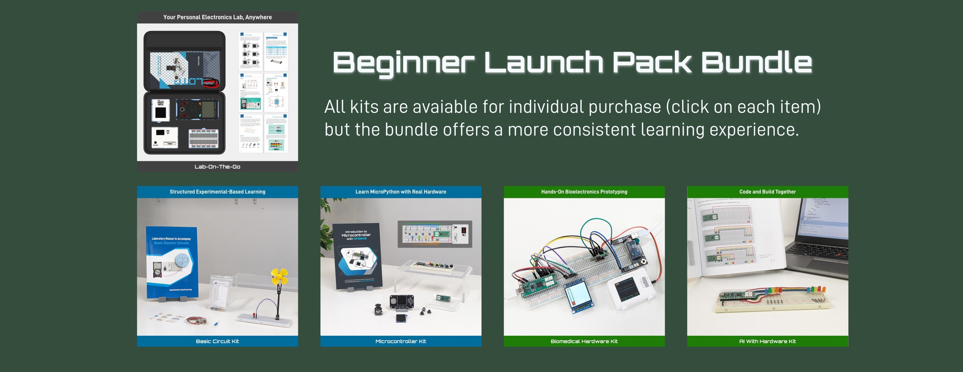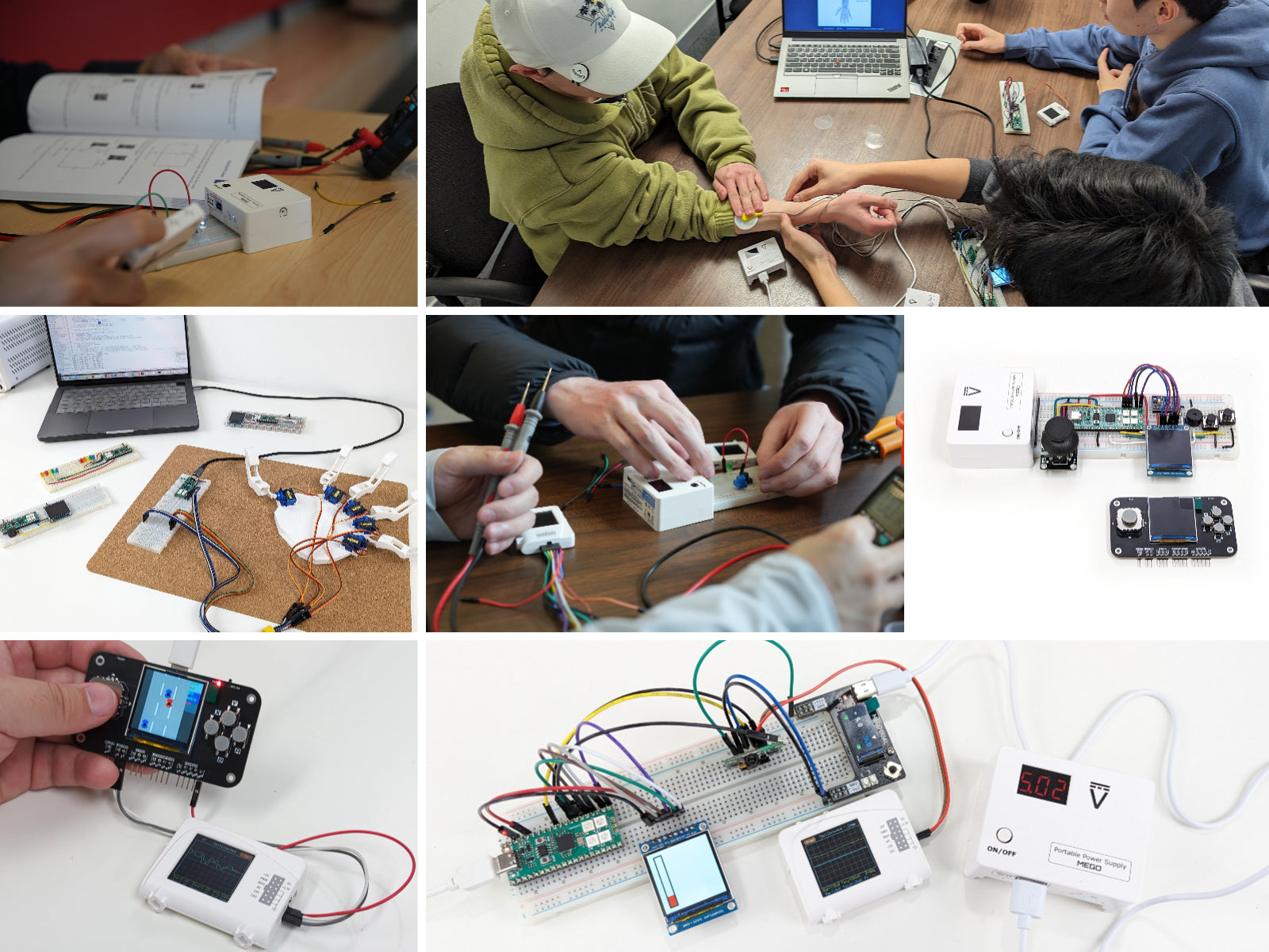 A hands-on electronics kit for adult learners, hobbyists, and curious teens. Learn core concepts like voltage, current, Ohm’s Law, sensors, and circuit behavior through guided, step-by-step projects. Includes real components, portable measurement tools, and a structured learning book for self-paced, practical exploration. Perfect foundation for diving deeper into microcontrollers, AI-based applications, and biomedical hardware projects.